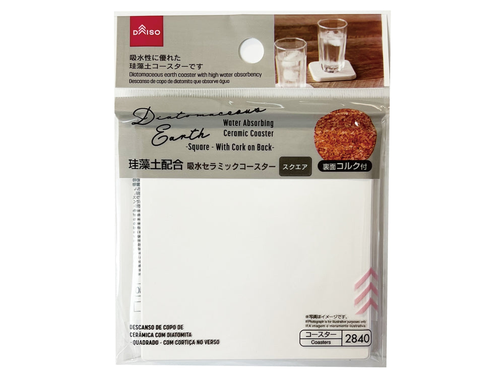 Water Absorbing Ceramic Coaster Square with Cork on Back