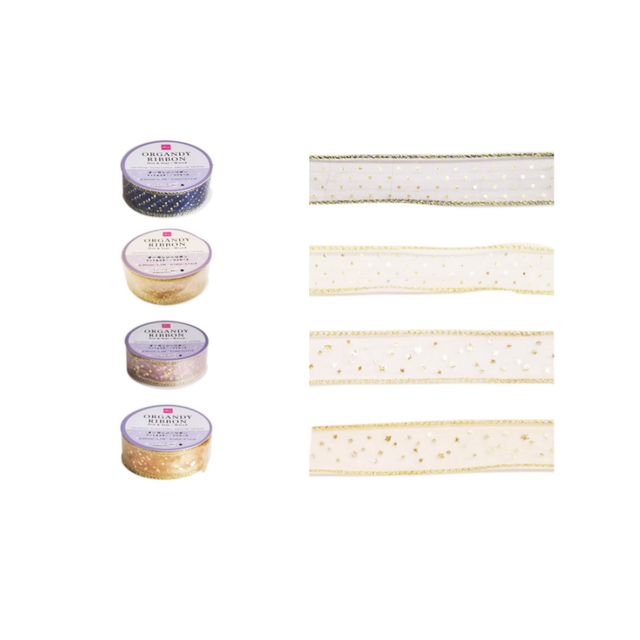 Organdy Ribbon Dot & Star Wired 0.78in
