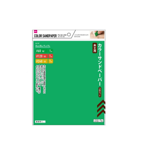 Set of Three Colored Sandpapers for Woodwork #60/#120/#2