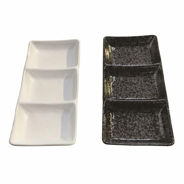 Three Grid Dish White/Black 19.5cm x 9cm x 2.2cm